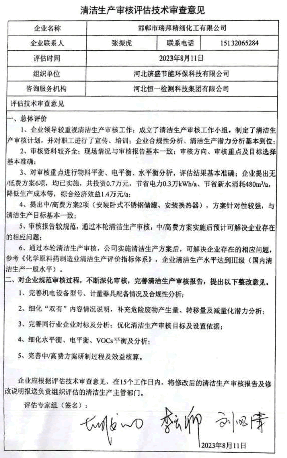 清洁生产审核评估技术审查意见